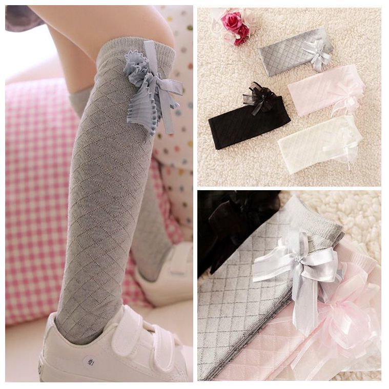 送料無料子供用 ハイソックス 靴下 膝丈 膝上 ニーソックス オーバーニーソックス ニーハイソックス ロング リボン りぼん 可愛い かわいい キュート 格子柄 シンプル 単色 ソリッドカラー 女の子 女児 3歳〜8歳 子ども キッズ こども くつ下 く